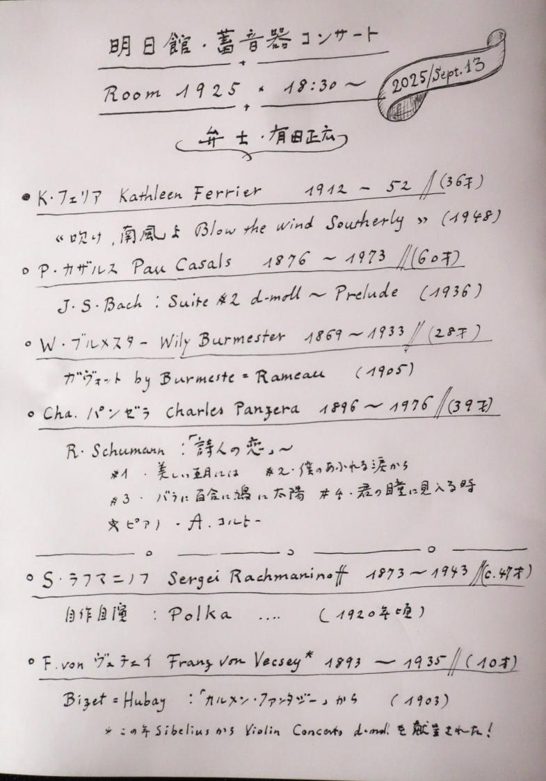 等、歌・ヴァイオリン・ピアノなどの貴重な名演を演奏予定